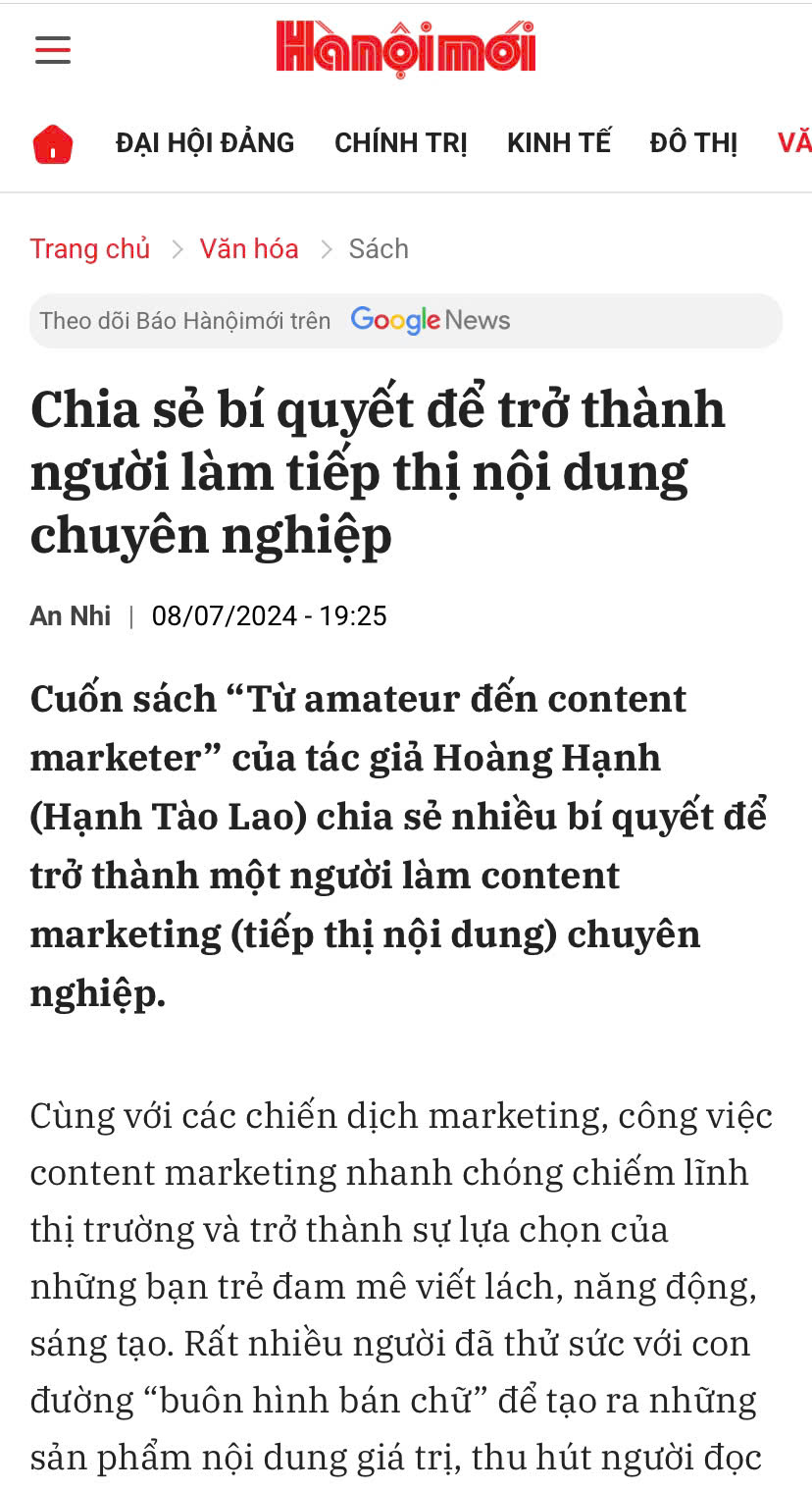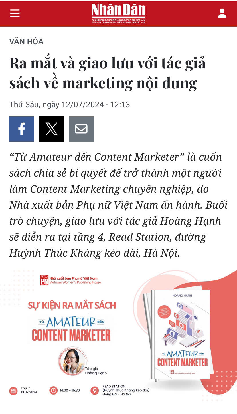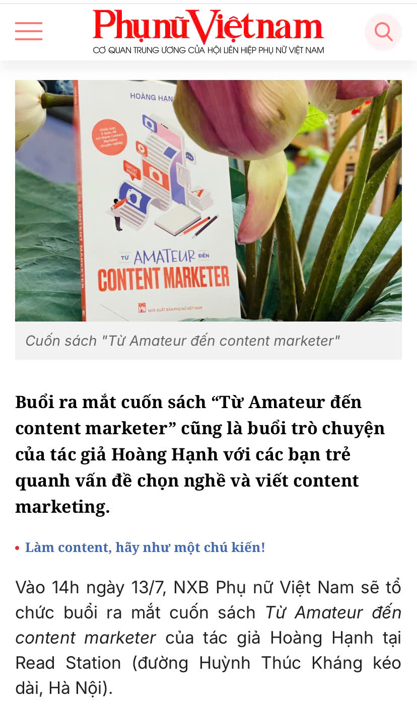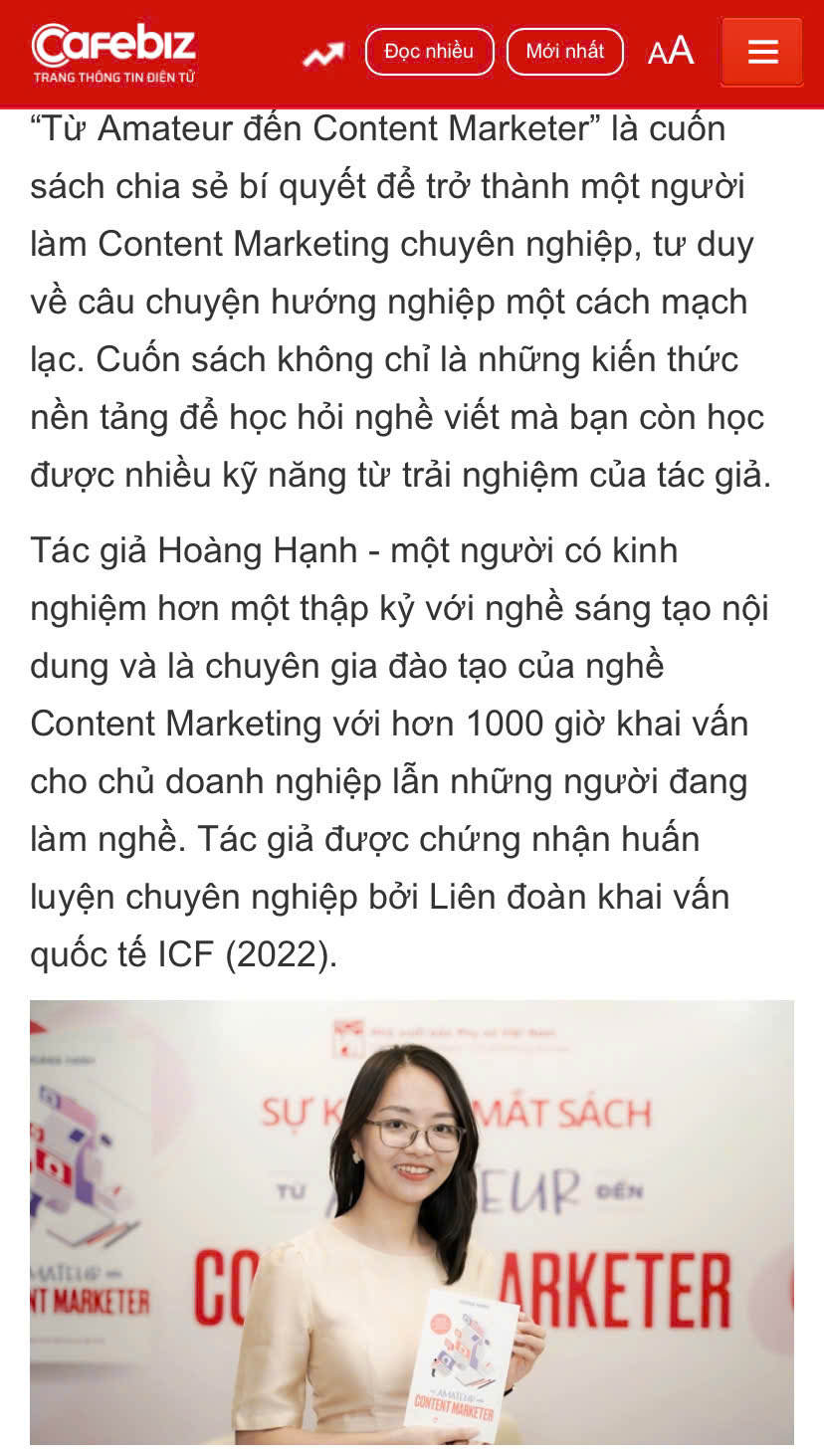 Cuốn sách về nghề Content Marketing - "Từ Amateur đến Content Marketer”